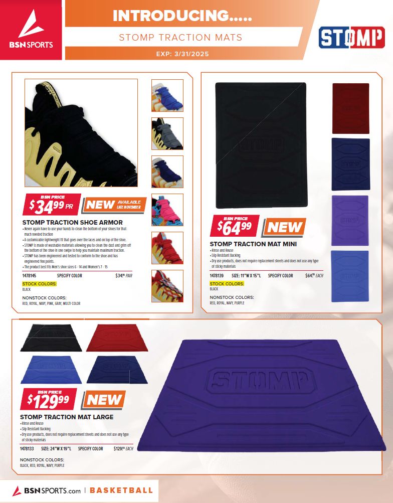 STOMP secured distribution with BSN Sports and Game One Sports, expanding its reach nationwide. That same year, STOMP products gained traction (literally!) from coast to coast, being used in training facilities, schools, gyms, and arenas at every level of play.