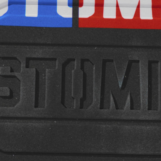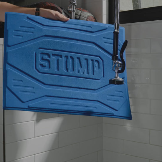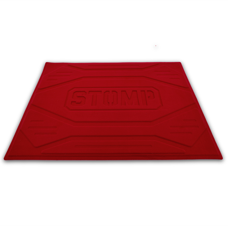Large STOMP mat for cleaning the dust off of shoes before taking the court. This 24”x19” STOMP mat includes a large surface area for cleaning the shoes. The back side of the mat is made of a slip resistant material to keep the mat in place during use. STOMP mat is made of water resistant products so that it can easily be rinsed to keep the mat free of dust for repeated use.